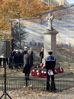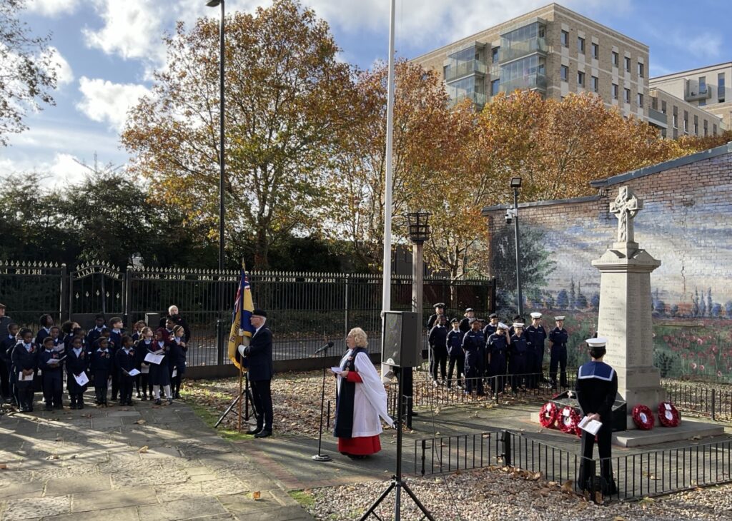 October 31, 2025The annual Remembrance Sunday Service and laying of wreaths was held at Brick Lane Music Hall in conjunction with the Silvertown and North Woolwich Royal British Legion. The Service was led jointly by the Rev Canon Ann Easter and Monsignor John Armitage, with contributions from Vincent Hayes MBE, Andrew Robley, and pupils from the local primary school. The service was well attended by members of the Royal British Legion and their families as well as local cadets, residents and community volunteers, as well as Brick Lane Music Hall staff and customers.